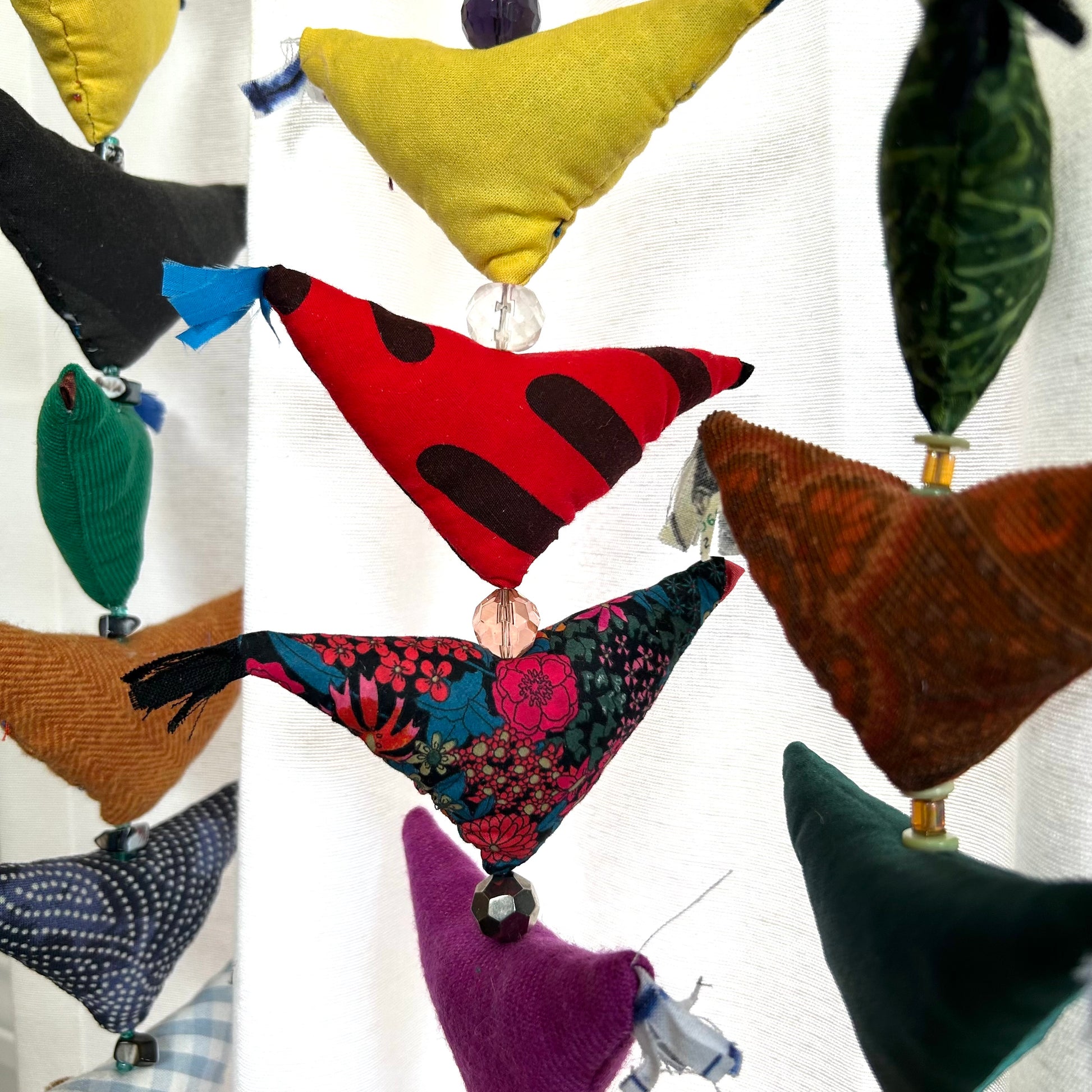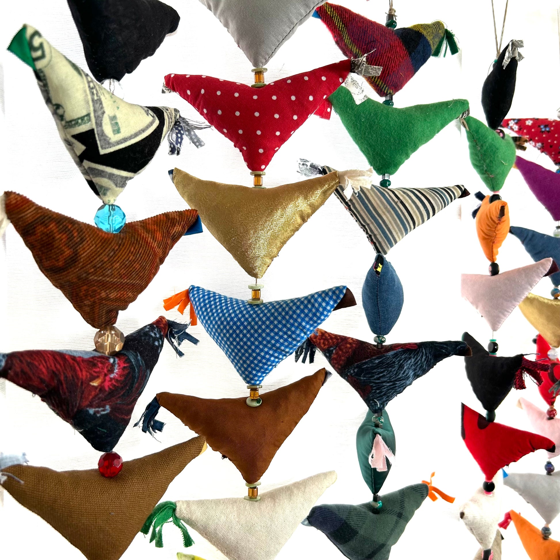 prosperity hens for centuries have popped up in different regions of India, but are said to originate in northern India where owning a flock of hens could literally mean survival for some. prosperity hens symbolized this wealth, good fortune and abundance. they are traditionally made and sold by women in cooperatives from vibrant scrap fabrics often from saris, beads and bells. they are also often linked to the goddess of prosperity Lakshmi.
